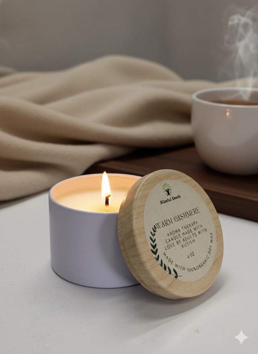 Hand-poured scented candles are a core offering at Blissful Seeds. These candles are made with soy wax and cotton wicks and are available in a variety of fragrances. Artists take part in the pouring, labeling, and packaging process, giving each candle a personal touch.