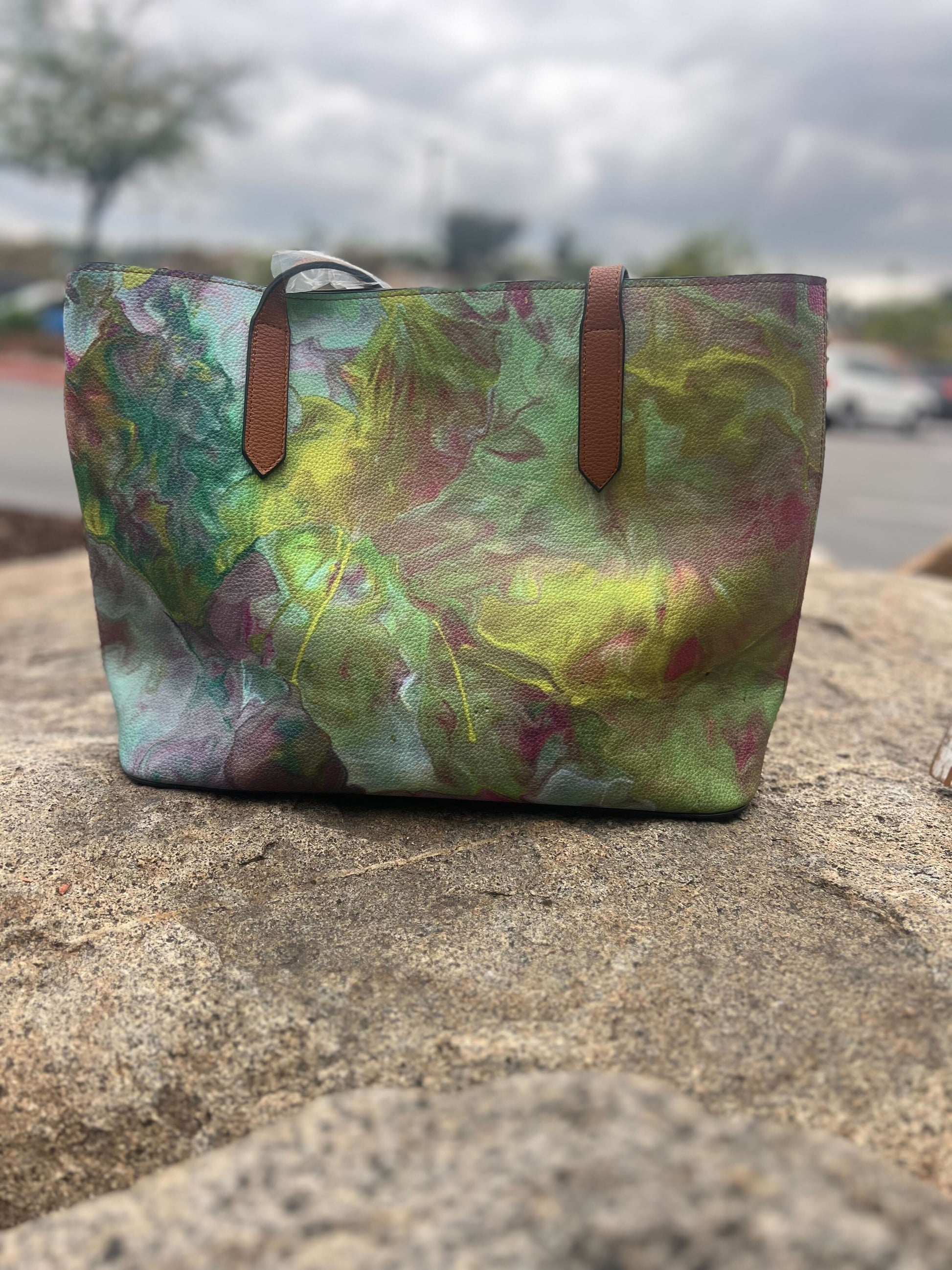 Elevate your everyday style with this High-Quality Tote Purse. The tote bag features a striking rendering of the artist's painting, showcased prominently on both sides. The colors are vibrant, capturing the essence of the original artwork whether it’s an abstract design or a detailed landscape.